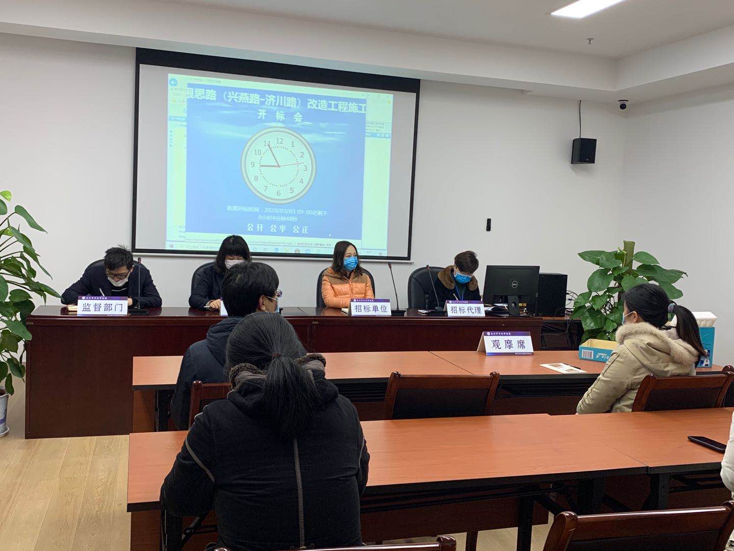 2020年3月3日上午9:00,我公司代理的根思路改造工程施工项目在泰兴市行政审批局公共资源交易中心举行开标会。与以往不同的是,这是疫情防控期间,泰兴市首个以“网上电子投标+视频直播”模式进行的招标活动,也是泰兴市推进公共资源交易“零跑腿”的又一有力举措。